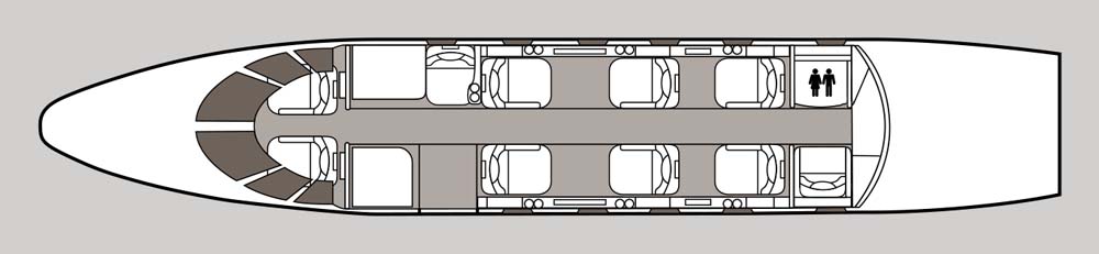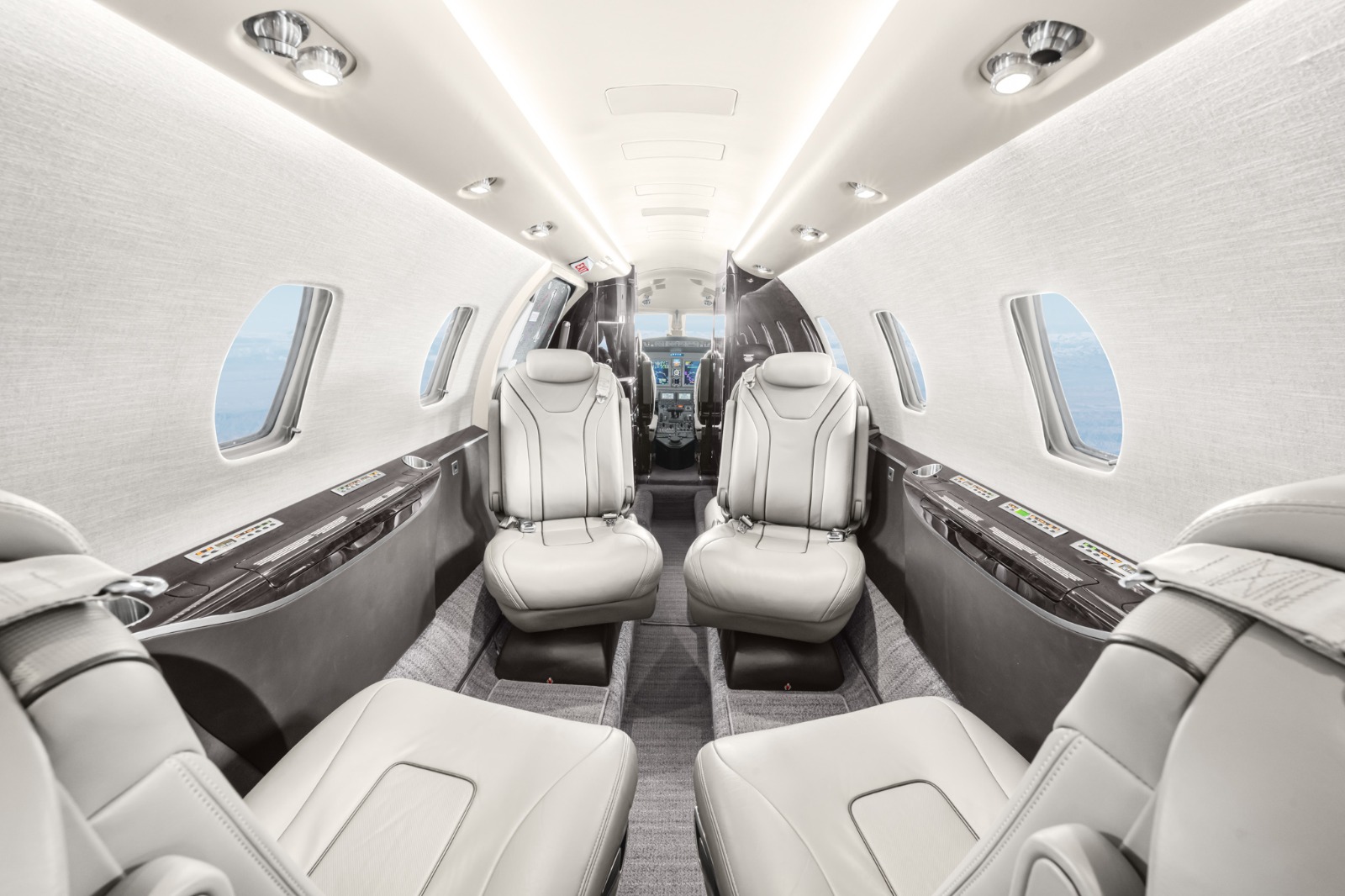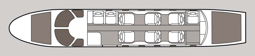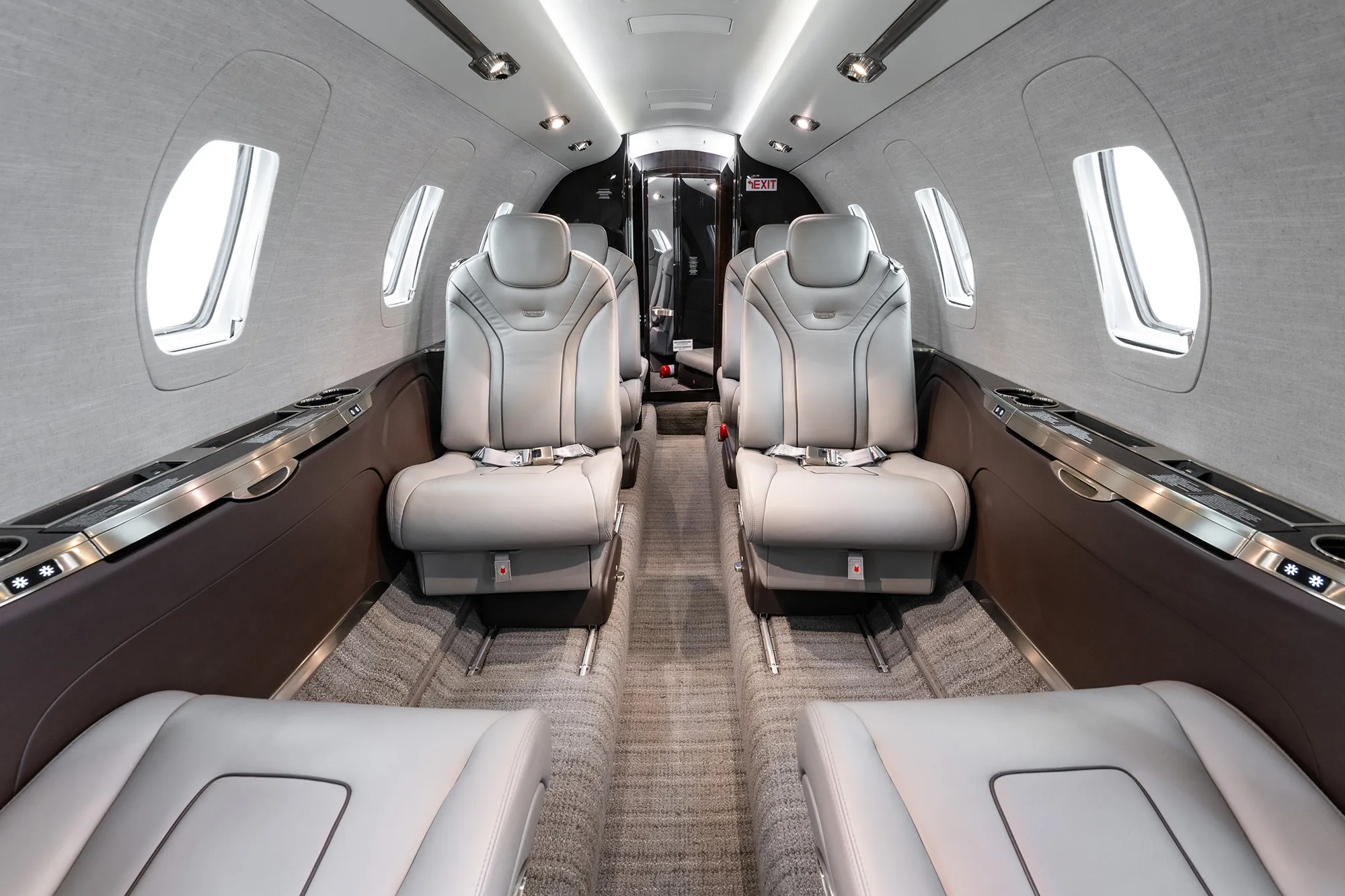Our Cessna Citation Bravo is your business jet for short range flights and daytrips. Rotating leather seats, improved headroom and efficient noise insulation offer an unforgettable travel comfort combined with ideal conditions for working on board. Its excellent takeoff and landing performance allows operation on short runways and offers a maximum range of approximately 2800 kilometers. Reach your destination with an outstanding cost/performance ratio.