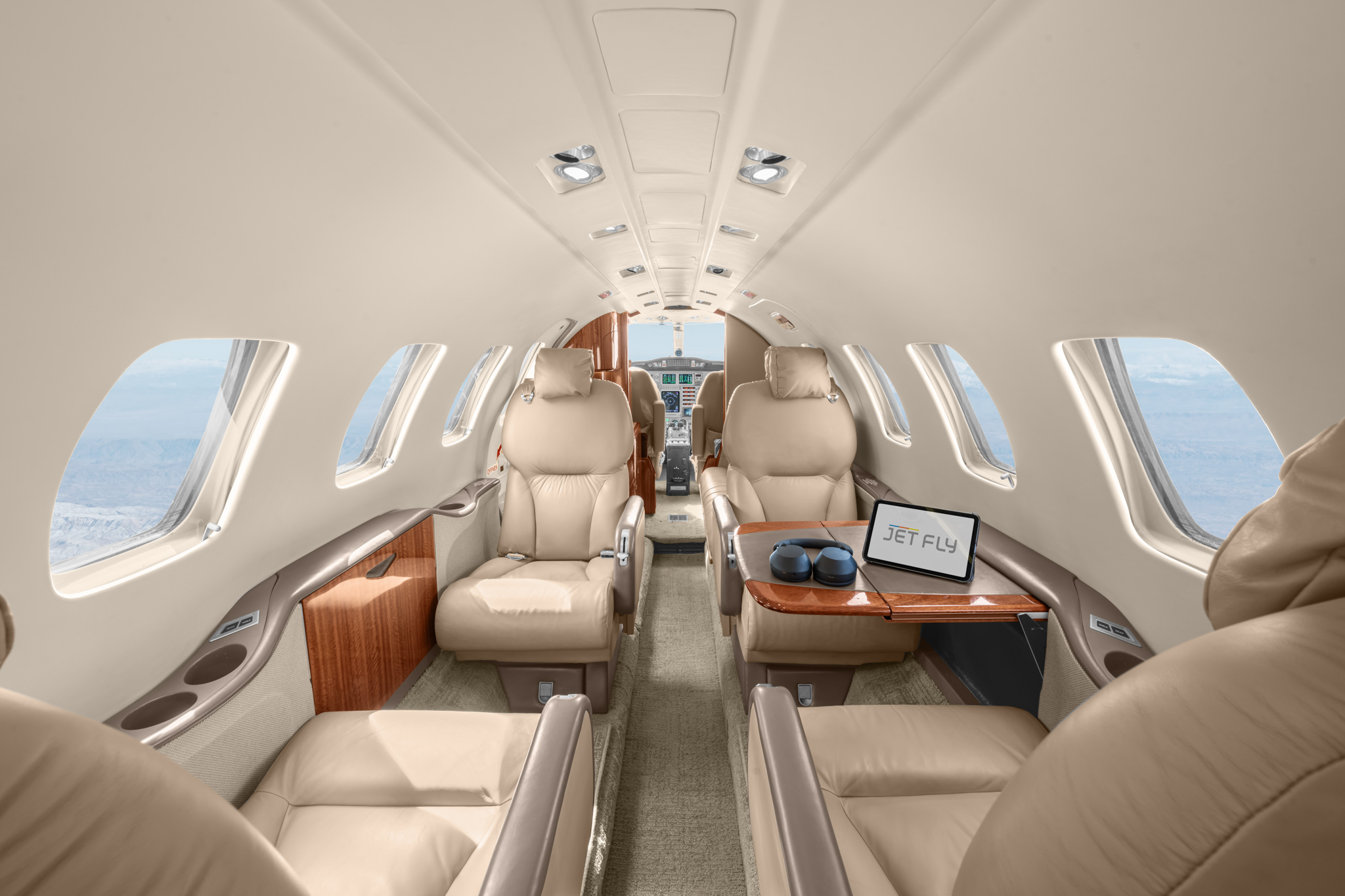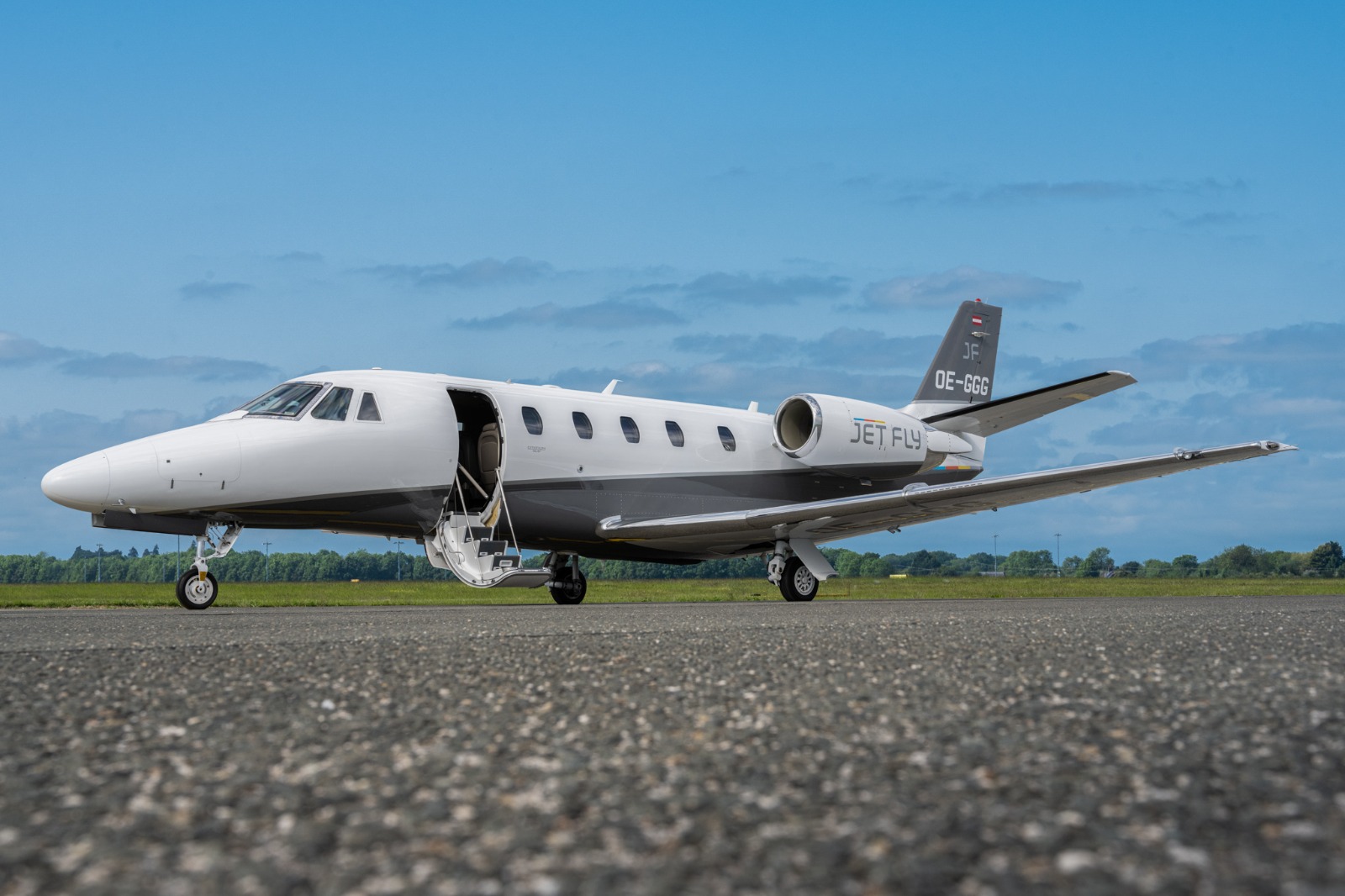 Our Citation XLS+ impresses with its comfortable cabin height and the refurbished, wide leather armchairs. The spacious luggage compartment will fit nearly all kind of suitcases, skiing and golf equipment. The outstanding balance of range, speed and payload of the airplane offer a wide range of operations. Starting from August 2023, OE-GGG will be available in the new JET FLY design offering even more cabin comfort and upgraded interior.